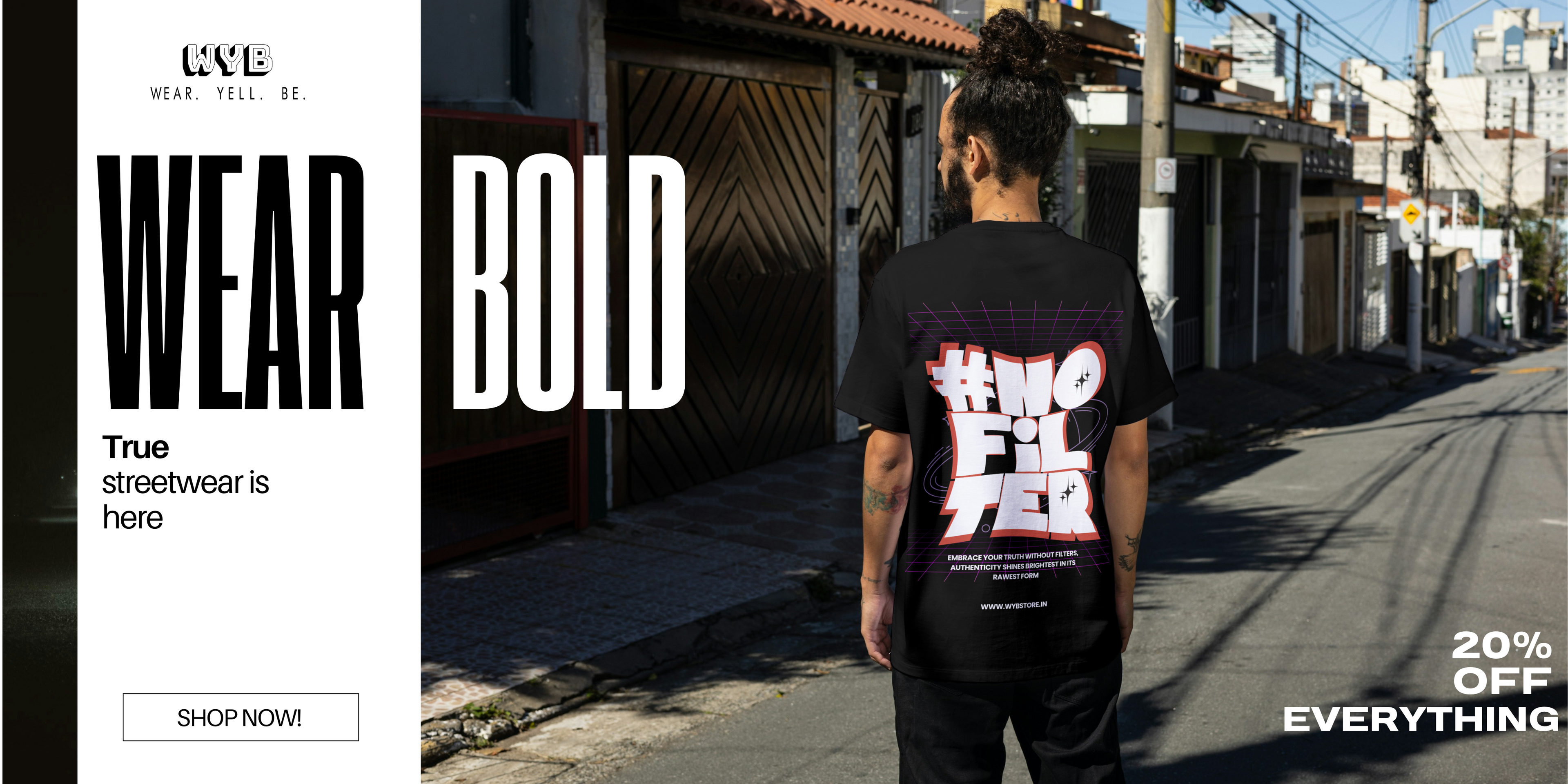 At WYB — Wear. Yell. Be. — our mission is to inspire fearless self-expression. We believe clothing is more than fabric; it’s your voice, your statement, your energy.